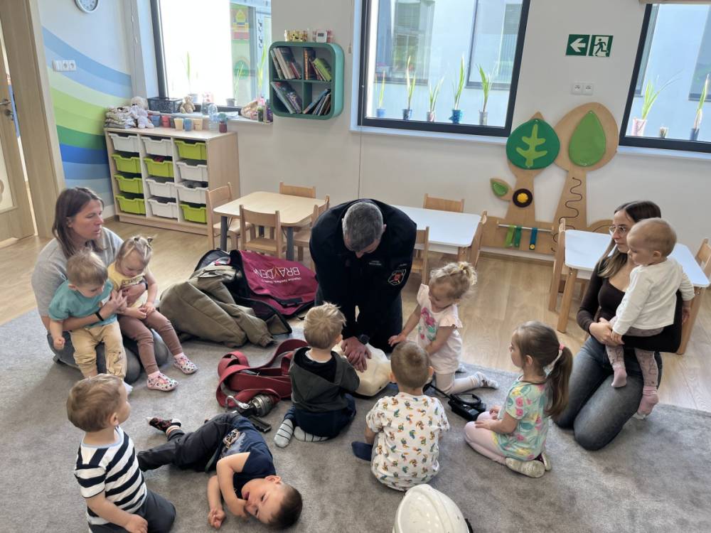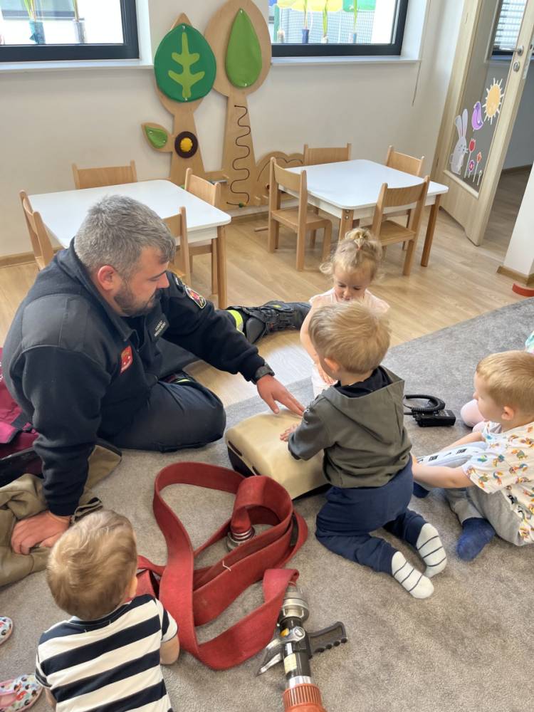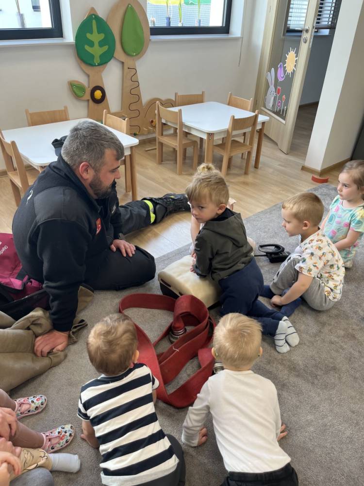 Z okazji dnia Strażaka w naszym żłobku gościliśmy Strażaka.