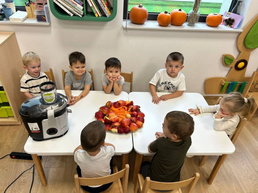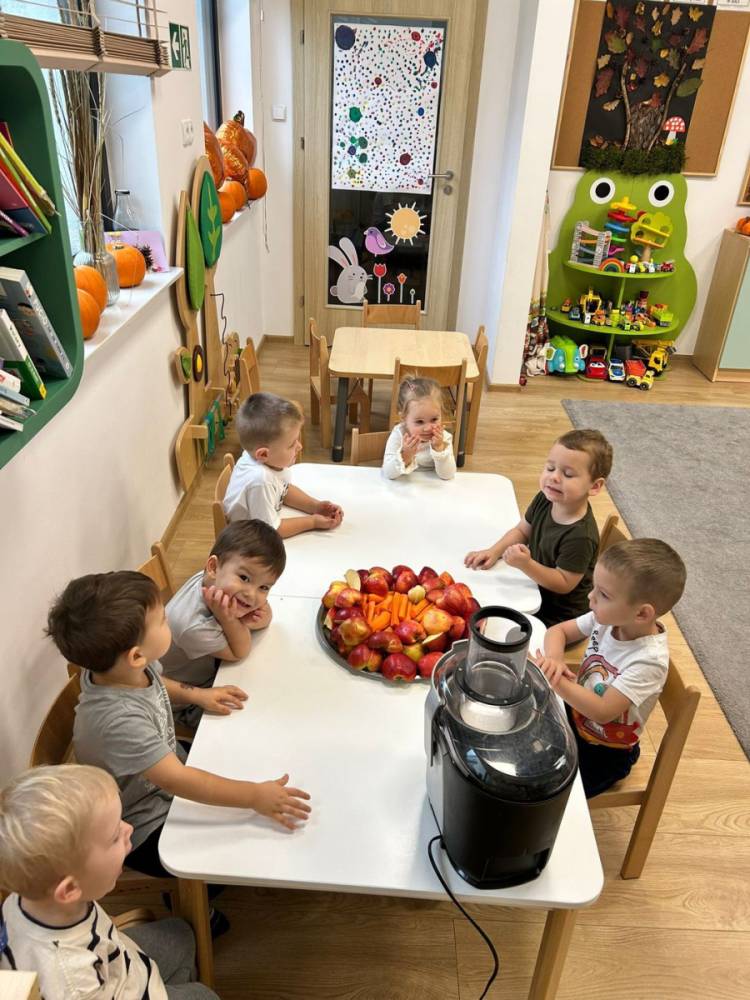 Obchodziliśmy Dzień Zdrowego Żywienia, podczas którego wspólnie przygotowywaliśmy pyszny, naturalny sok owocowo-warzywny. Dzieci z zainteresowaniem poznawały smak i zapach świeżych składników.